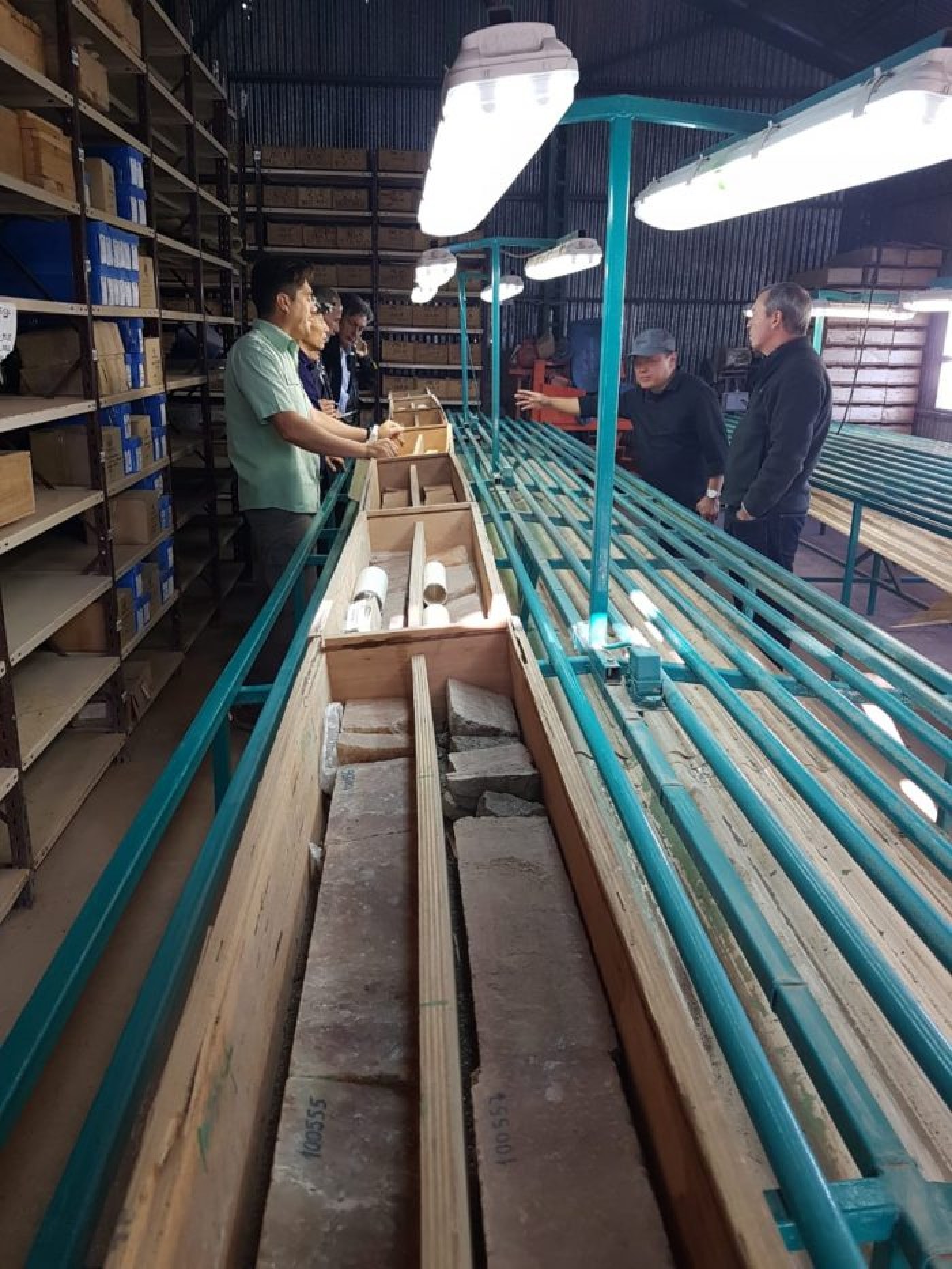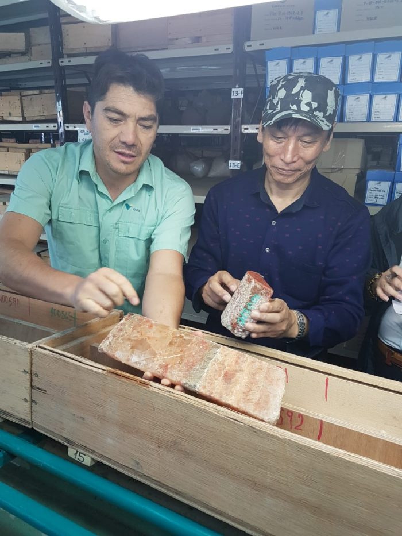 Un momento importante de la recorrida fue la visita a los depósitos de los “testigos geológicos” de la mina, en donde la misión china realizó varias consultas sobre el proceso extractivo y el potencial estimado del yacimiento.