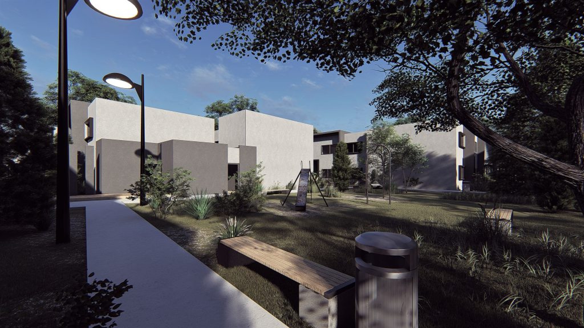 El terreno albergará 80 departamentos construidos con materiales tradicionales rodeado de superficie vegetal y un parque central de 1.500 metros cuadrados para hacer uso de beneficios como reducción de efecto isla de calor, espacios de juegos y esparcimiento, aumento de superficie permeable y mejora de la calidad ambiental.