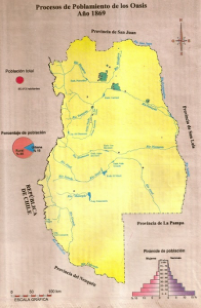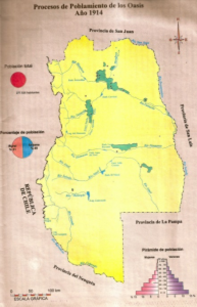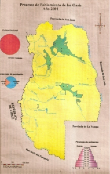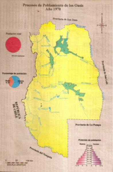 - La unidad de este modelo es el Oasis, donde conviven las distintas actividades (rural, urbano, industrial, etc.). (dicho esto sin desconocer que el 96.5% del resto del territorio alberga a un 3% de la población provincial).