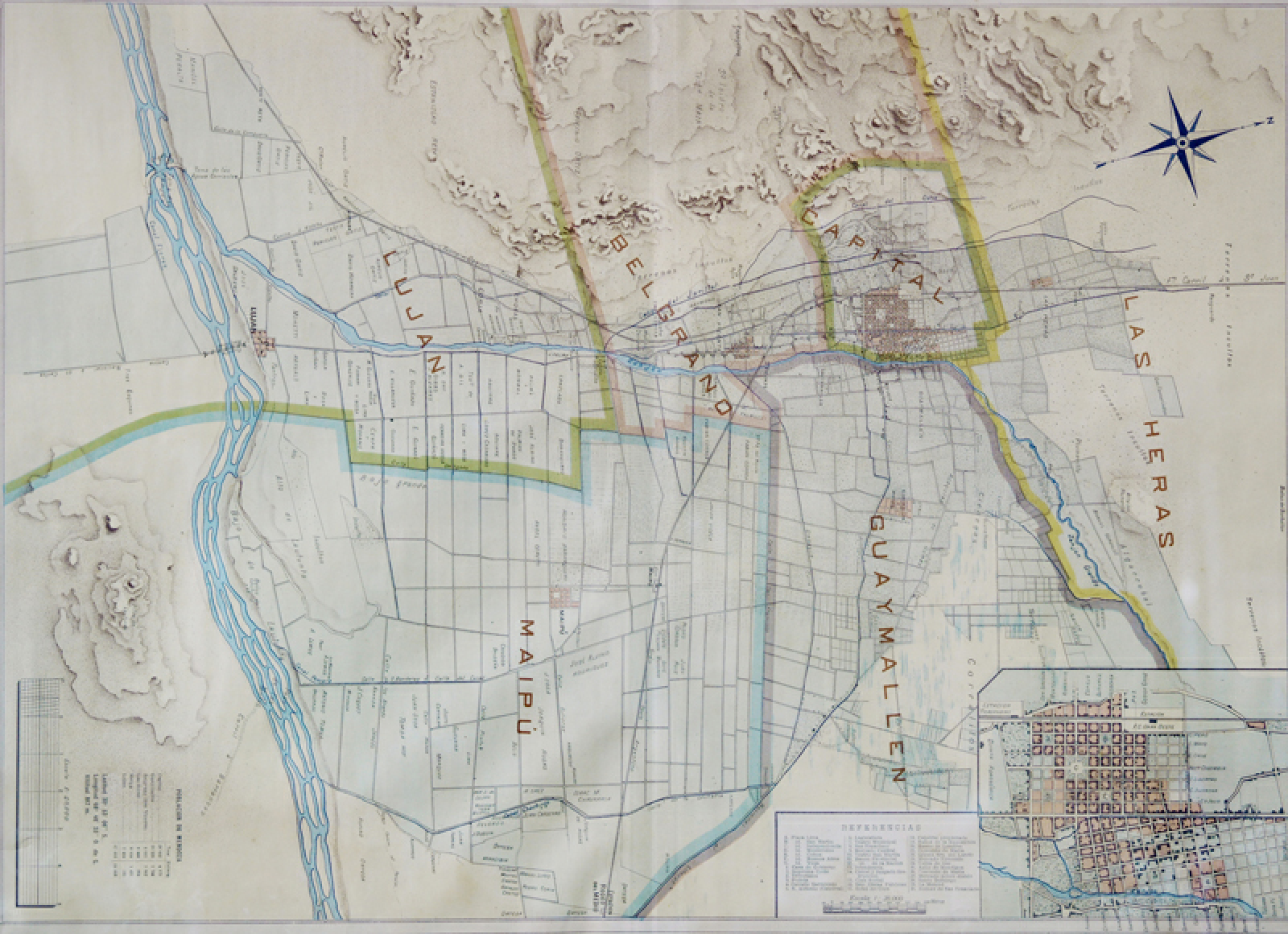Plano del Oasis Norte correspondiente a la cuenca del Río Mendoza Principios del siglo XX
