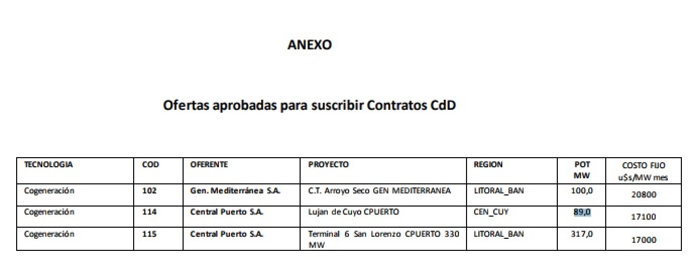 El Gobierno no financia la construcción, sino que garantiza la compra de la energía que se va a producir. Para ello se realizó una licitación en la que se eligieron tres proyectos de cogeneración. El resto de las propuestas, más de 20, deberán mejorar los precios ofertados porque los consideraron muy elevados.